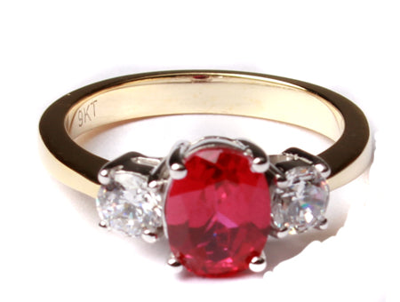9ct Yellow Gold Red CZ Three Stone Dress Ring